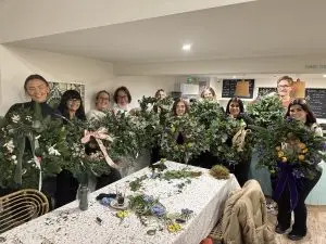 Everything you need to create your own natural Christmas wreath, Seasonal foliage of Spruce, and eucalyptus, thistles, berries, pine cones and traditional fruits with a velvet bow.